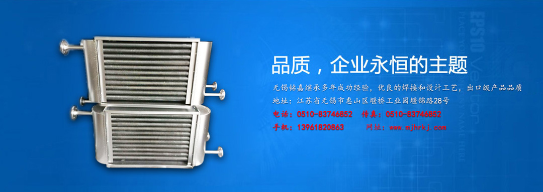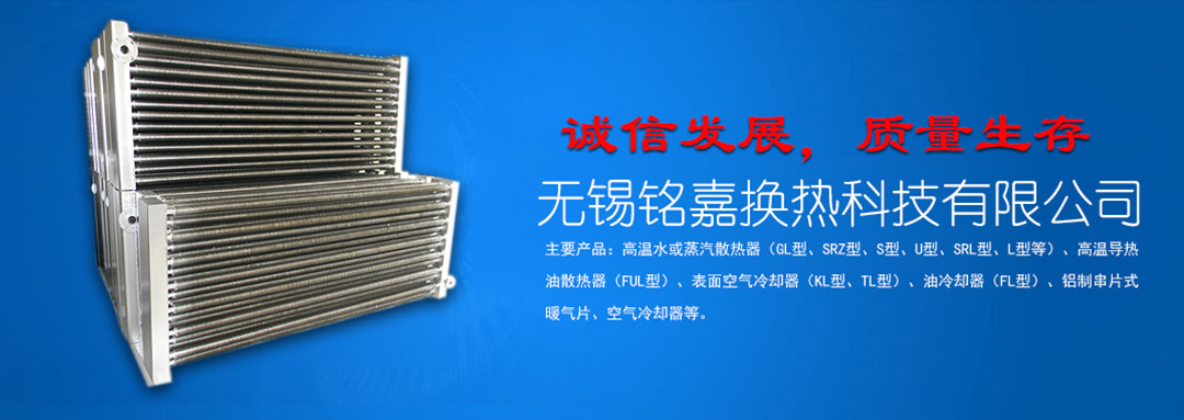 無錫銘嘉換熱科技有限公司是生產散熱器的專業工廠。 產品有:高溫水或蒸汽散熱器、高溫導熱油散熱器表面空氣冷卻器、油冷卻器、鋁制串片式暖氣片空氣冷卻器、翅片管換熱器